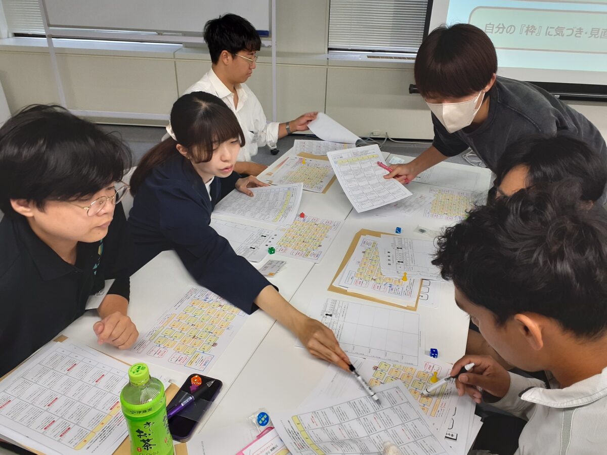 研修内容は、毎年好評の「キャリアデザインすごろく」です。グループ毎に、本研修オリジナルのすごろくを行い、ワークとライフにまつわるイベントを疑似体験しながら自分のキャリアについて具体的にイメージし、考える研修です。