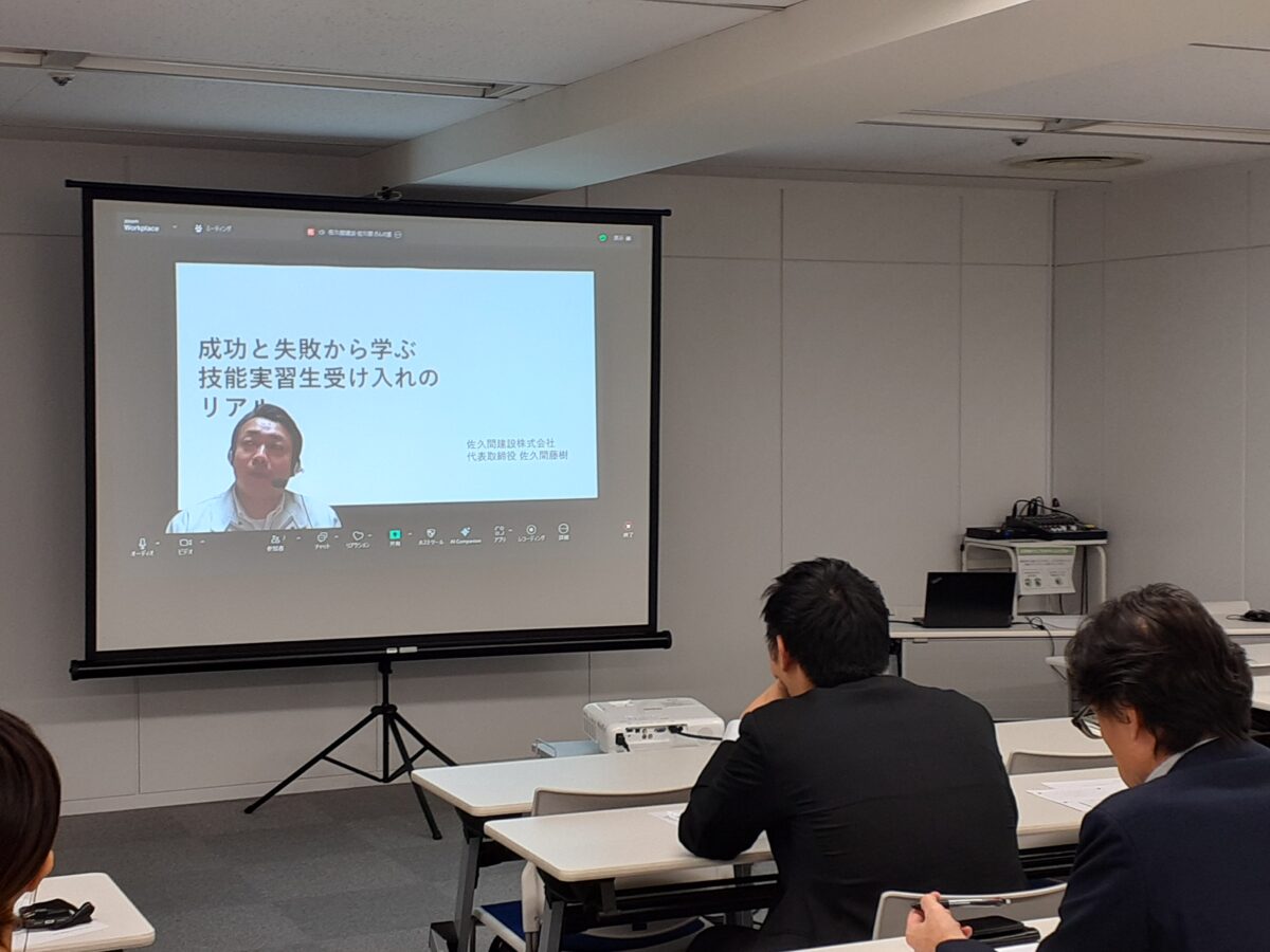第2部は、「成功と失敗から学ぶ実習生受け入れのリアル」という題目で、佐久間建設㈱様における技能実習生受入れに関する実際の取り組みなどをお伺いしました。
